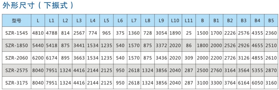 SZR系列熱礦振動(dòng)篩主要用于冶金行業(yè)溫度在600-800°℃的中、小粒級燒結(jié)礦的分級,并完成向冷卻設(shè)備的均勻布料作業(yè)。