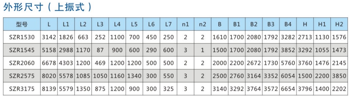 SZR系列熱礦振動(dòng)篩均為座式安裝。采用雙軸激振器,電機(jī)不參振;由兩臺電機(jī)外拖動(dòng)激振器作反向自同步旋轉(zhuǎn),使篩體沿直線方向作周期性往復(fù)運(yùn)動(dòng),從而達(dá)到篩分目的。